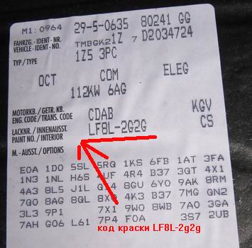 1. Для примера шильдик краски Skoda может выглядеть примерно вот так